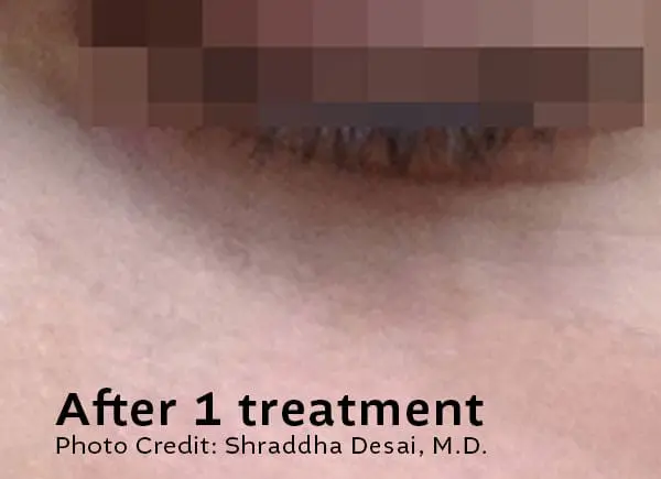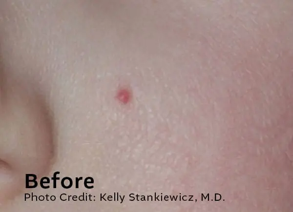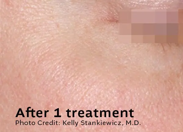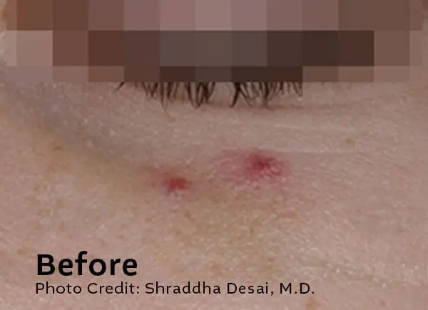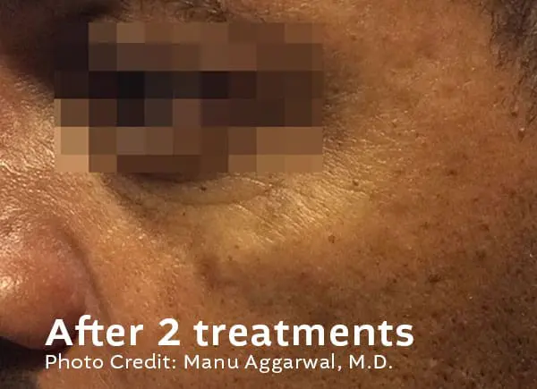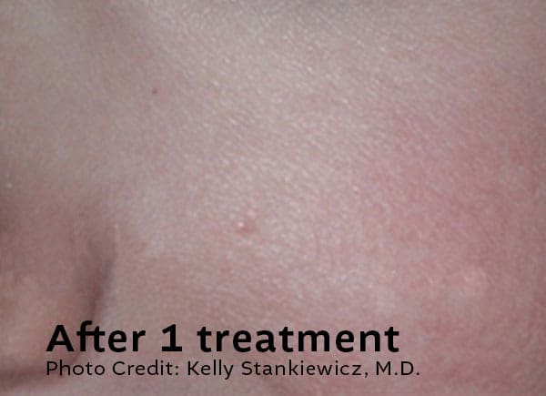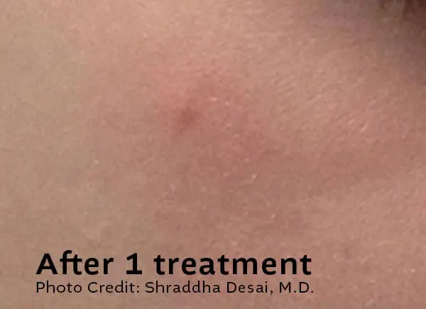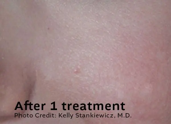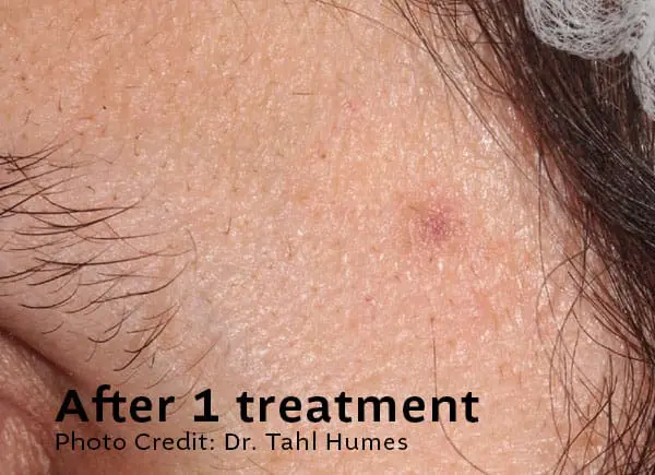 Downtime is minimal. Some lesions may darken, crust, or lightly scab as part of the healing process. This typically resolves within 7–10 days, depending on the lesion and your skin type.